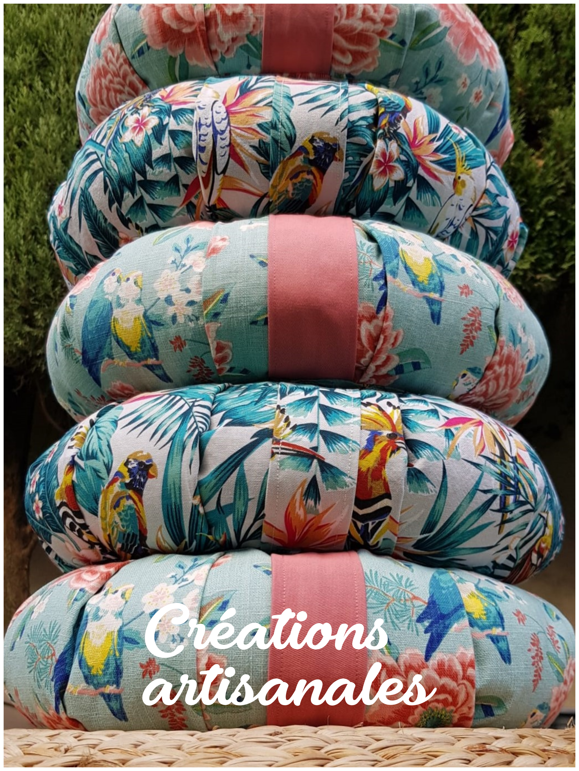Je m’inspire principalement pour le choix de tissus pour les zafus du règne végétal ou bien animal. Les feuilles et les fleurs ont la part belle dans mon univers. Mais vous trouverez aussi parfois des créations graphiques qui me plaisent.